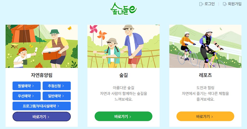 자연휴양림 예약은 가격이 저렴한만큼 선착순으로 진행되니, 예약 방법 확인하셔서 원하시는 날짜에 예약 성공하시기 바라겠습니다!