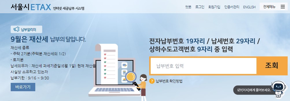 ② 서울시 지방세 납부 시스템인 이택스(ETAX) ※서울 시민만 가능